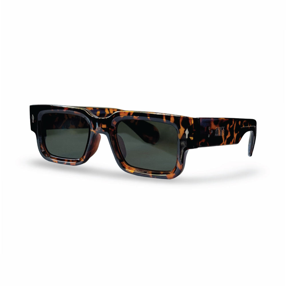 Let's give a warm welcome to the Dale Sunglasses. They're a sleek, chunky framed, stylish sunglasses. They feature a square shaped gloss tort coloured frame with deep green lenses.