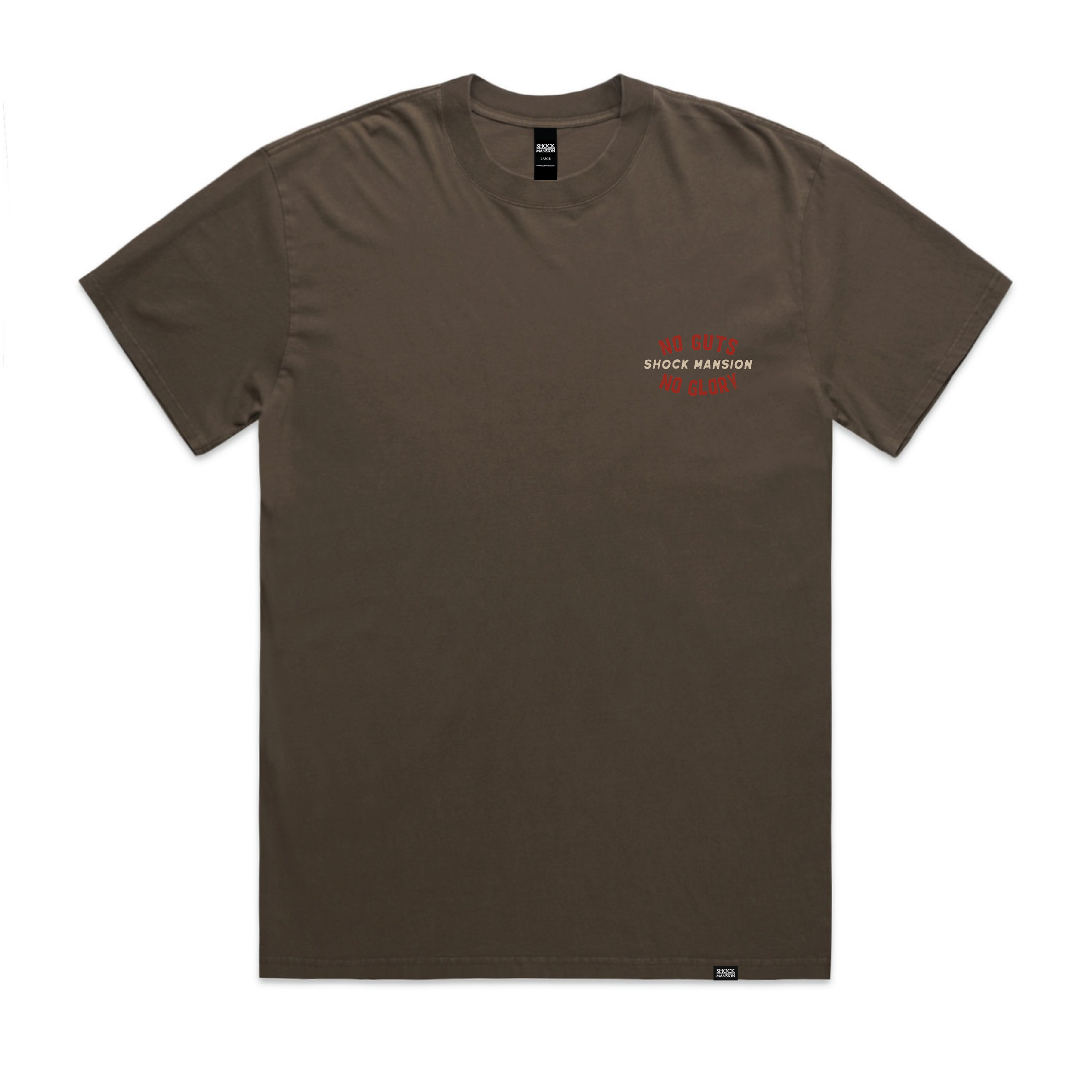 An old favourite with a new feel, No Guts No Glory. A heavyweight staple built to wear every day. Crafted from premium 240gsm 100% cotton, finished with a pigment dye wash for that lived-in, vintage feel straight off the rack.