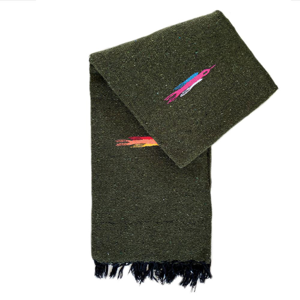 Authentic hand woven Thunderbird blanket, made in Mexico. Each blanket has a multi colour thunder bird design. These blankets are so soft, perfect for the beach, picnics, adventures, camping and especially in home styling.