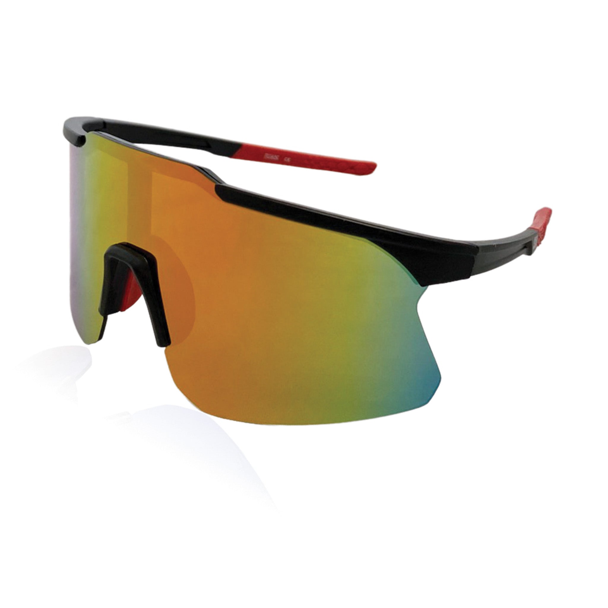 Built for comfort and made to move. The Enzo brings a sleek, fast look with its mirror lens and lightweight frame, perfect for everyday wear or days on the go. The sunglasses feature an all black frame with red mirror lenses.